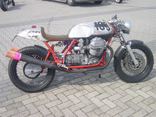 Jos kirjoittaa googleen cafe racer guzzi, niin tuo on varmaan ensimmäisiä kuvia mitä tulee vastaan. On ihan tyylikäs laite, mielenkiintoisine ratkaisuineen.